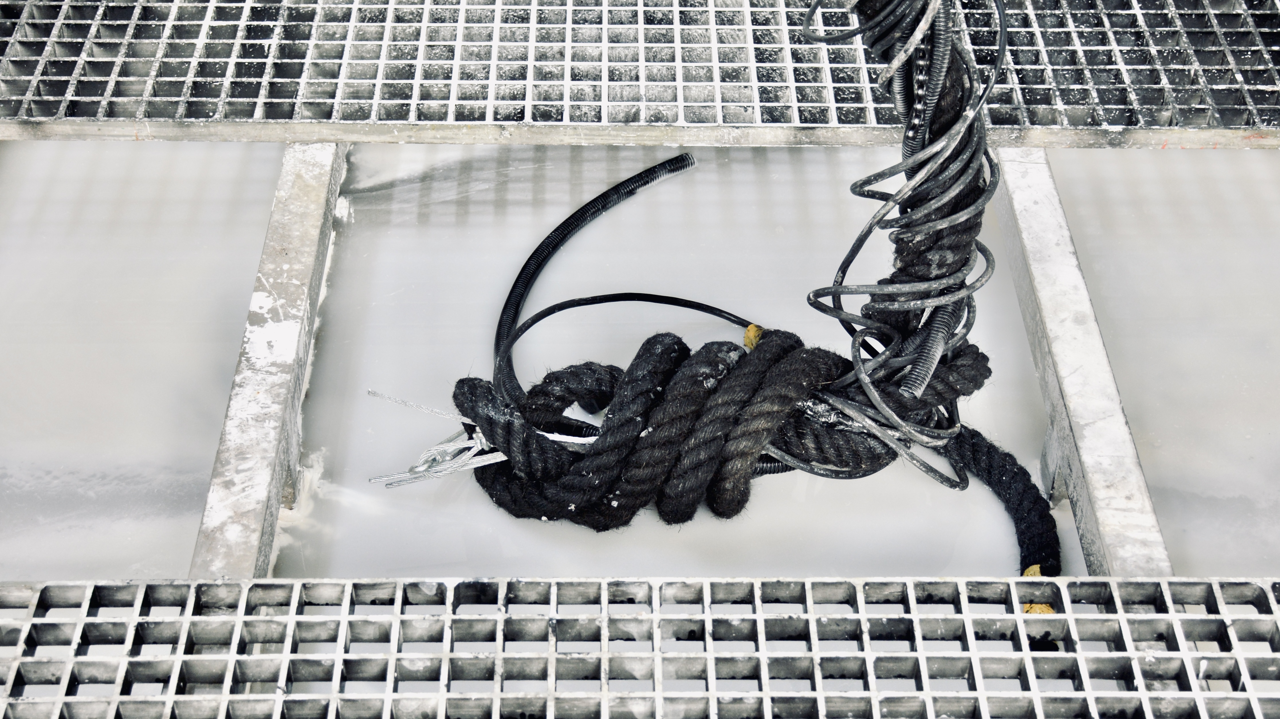 Material: iron, asphalt, polyurethane foam, hemp rope, wood